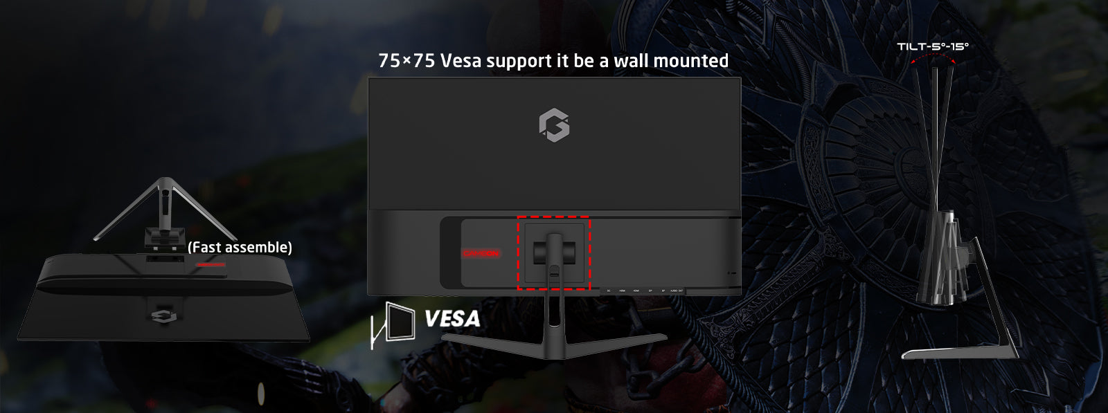 Featuring a sleek and modern design, our 27-inch flat screen monitor fits perfectly in any setup. With VESA mounting compatibility, you can easily mount it on the wall or an adjustable arm for the best viewing experience, complemented by a sturdy stand offering 5° forward and 15° backward tilt.